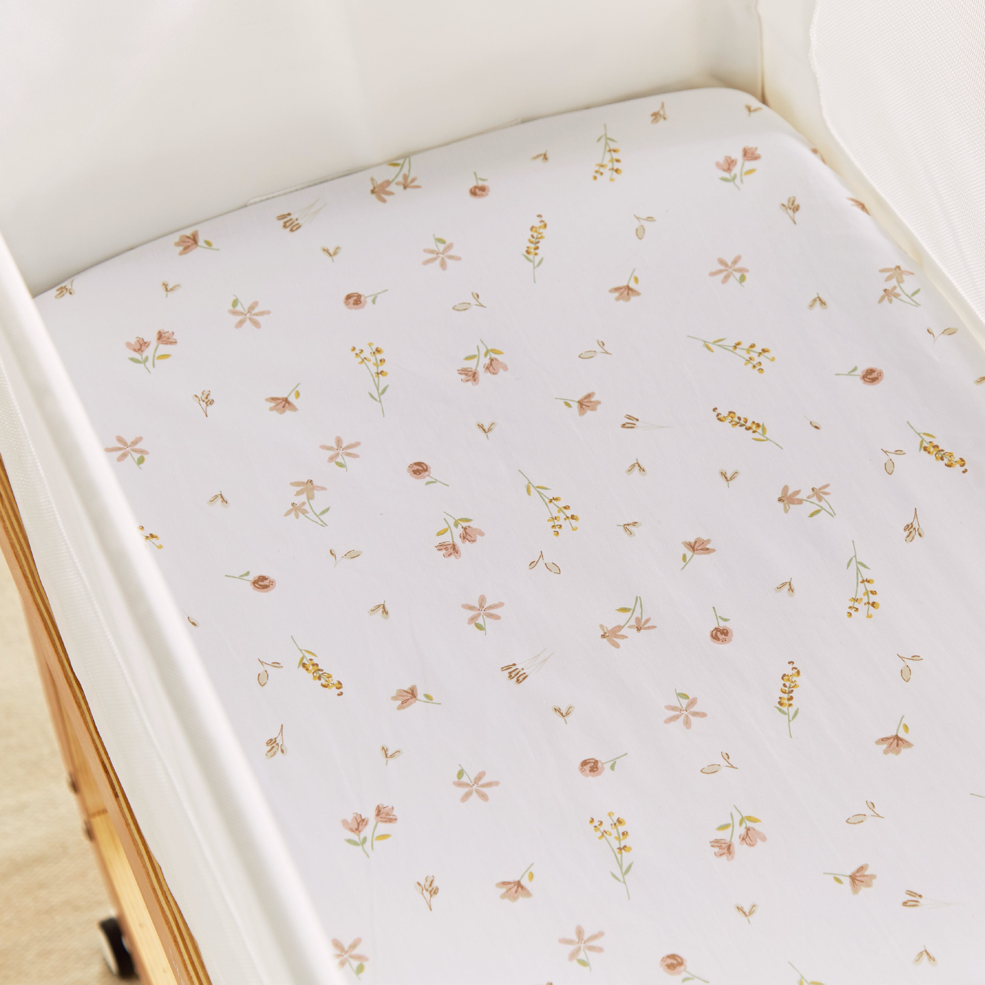 Our crib sheets are made from 100% cotton, offering a soft and breathable base for your baby’s first bed. Each sheet is designed to fit standard size bedside cribs / co-sleepers, with elasticated edges to keep everything in place. Ideal for layering with our comforter blanket for extra cosiness. Coming in two colours: white & cashmere.