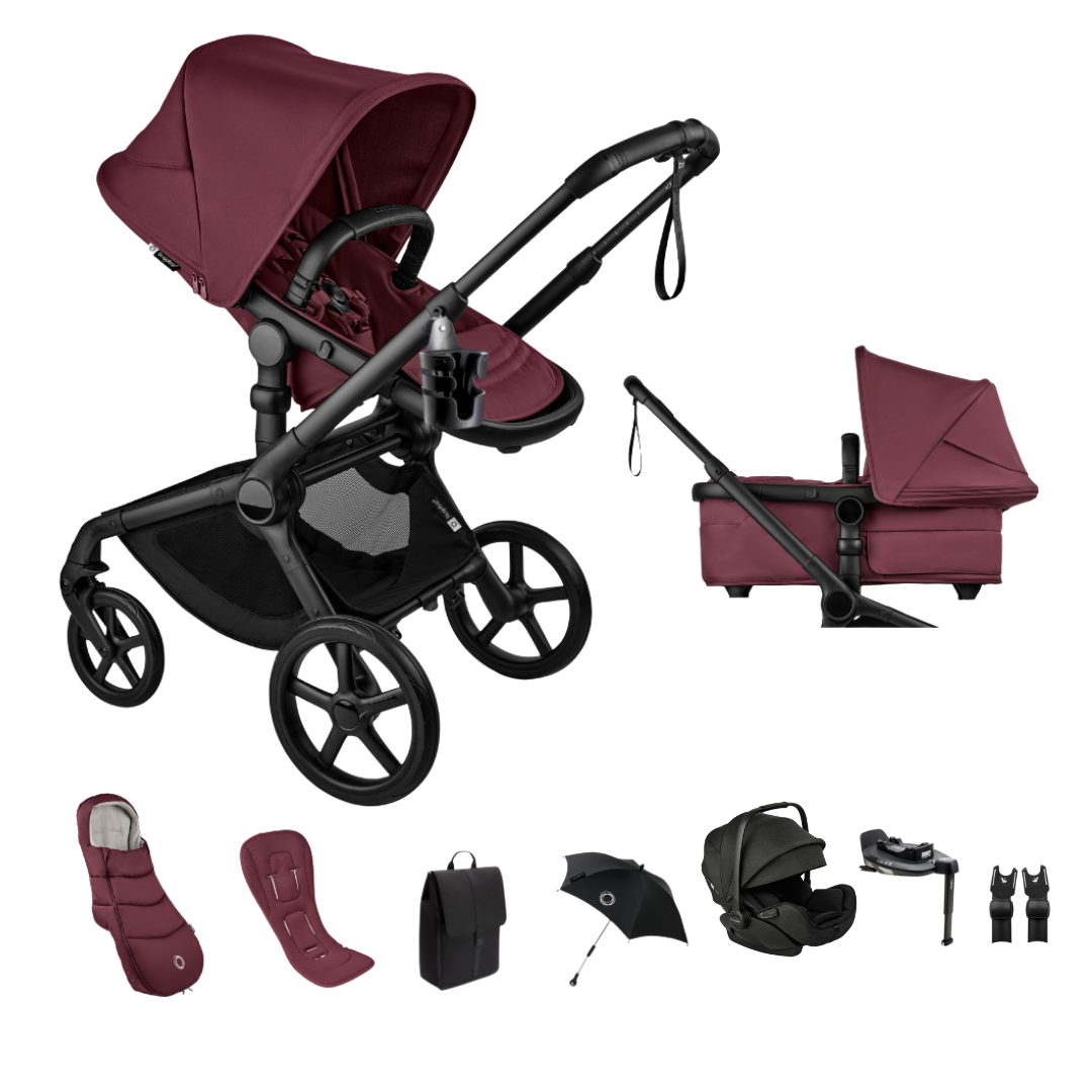 Bugaboo Fox 5 RENEW Pushchair Turtle Air Bundle in Dark Cherry.