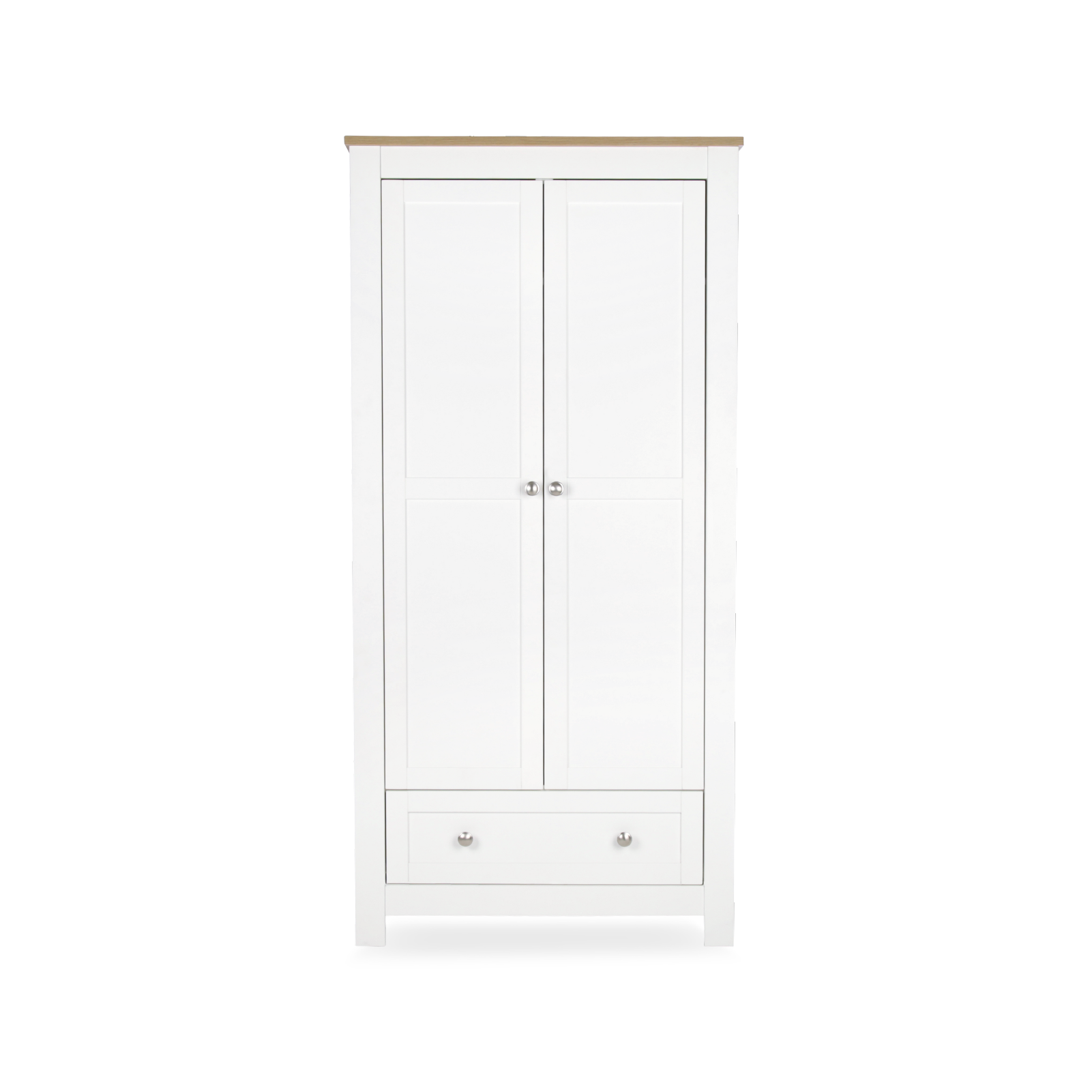 Finished in crisp white with warm oak-effect detailing, the Burford Wardrobe brings a reassuring, traditional feel to the nursery while offering practical storage for everyday family life. Its clean lines and natural tones make it easy to style alongside a wide range of nursery interiors.