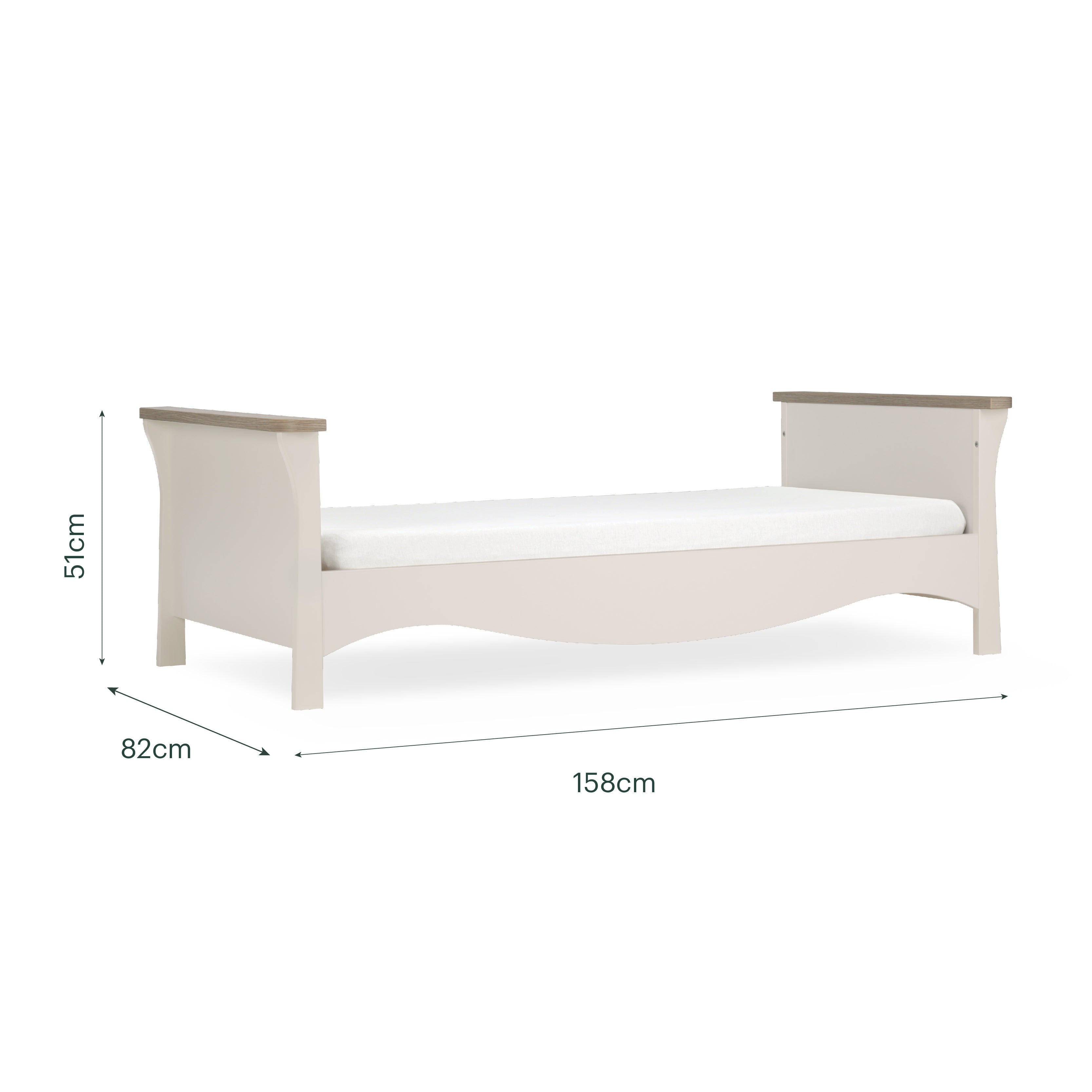 - This toddler bed is a great next-step option for families moving on from a standard cot, including those who previously used the Clara Mini Cot.