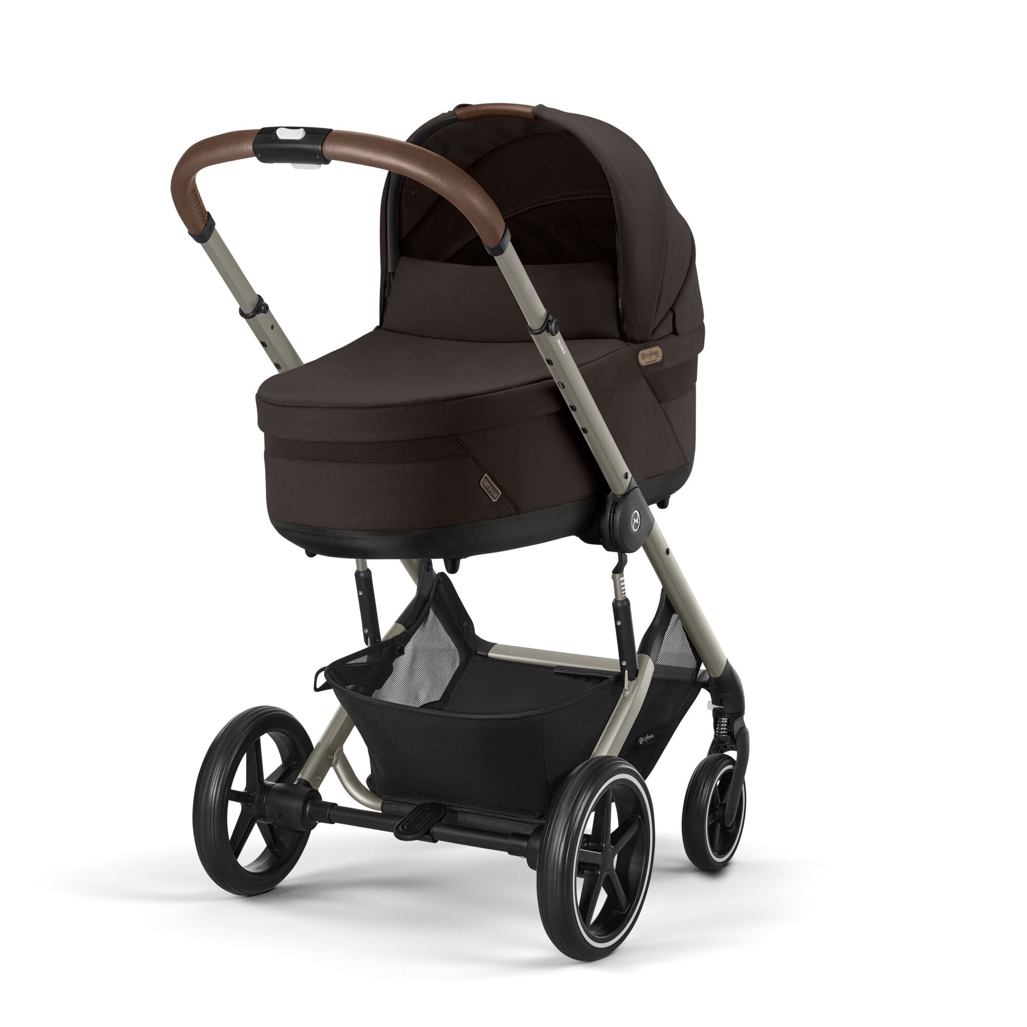 The new Cot S Lux Carrycot in Chocolate Brown is ideal for babies from birth until they are approximately six months old. Approved for overnight sleeping and with a cosy interior lining and soft foam mattress, the Cot S Lux offers maximum comfort and support. Simply click the carrycot to the Cybex Balios S Lux or Talos S Lux pushchair frame and you’re ready to go, removing the carrycot from the frame is just as easy using the memory buttons and integrated carrying handle. The new Cot S Lux has an additional internal pocket to keep belongings safe, a panorama sky view window for improved air circulation and a UPF50+ XXL sun canopy, keeping your baby protected from day one.