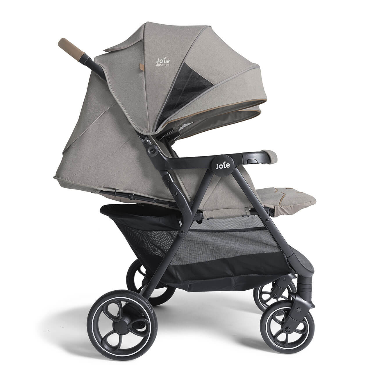 This double stroller from Joie comes with YourTilt™ customizable recline system, which offers multiple positions for each seat, including a lie-flat option perfect for newborns. Combining cord and mechanical features, it enables smooth, incremental adjustments. Easily lift the backrest one-handed with a handle, while lowering requires engaging the mechanism. Each click signals a new recline position for enhanced comfort.