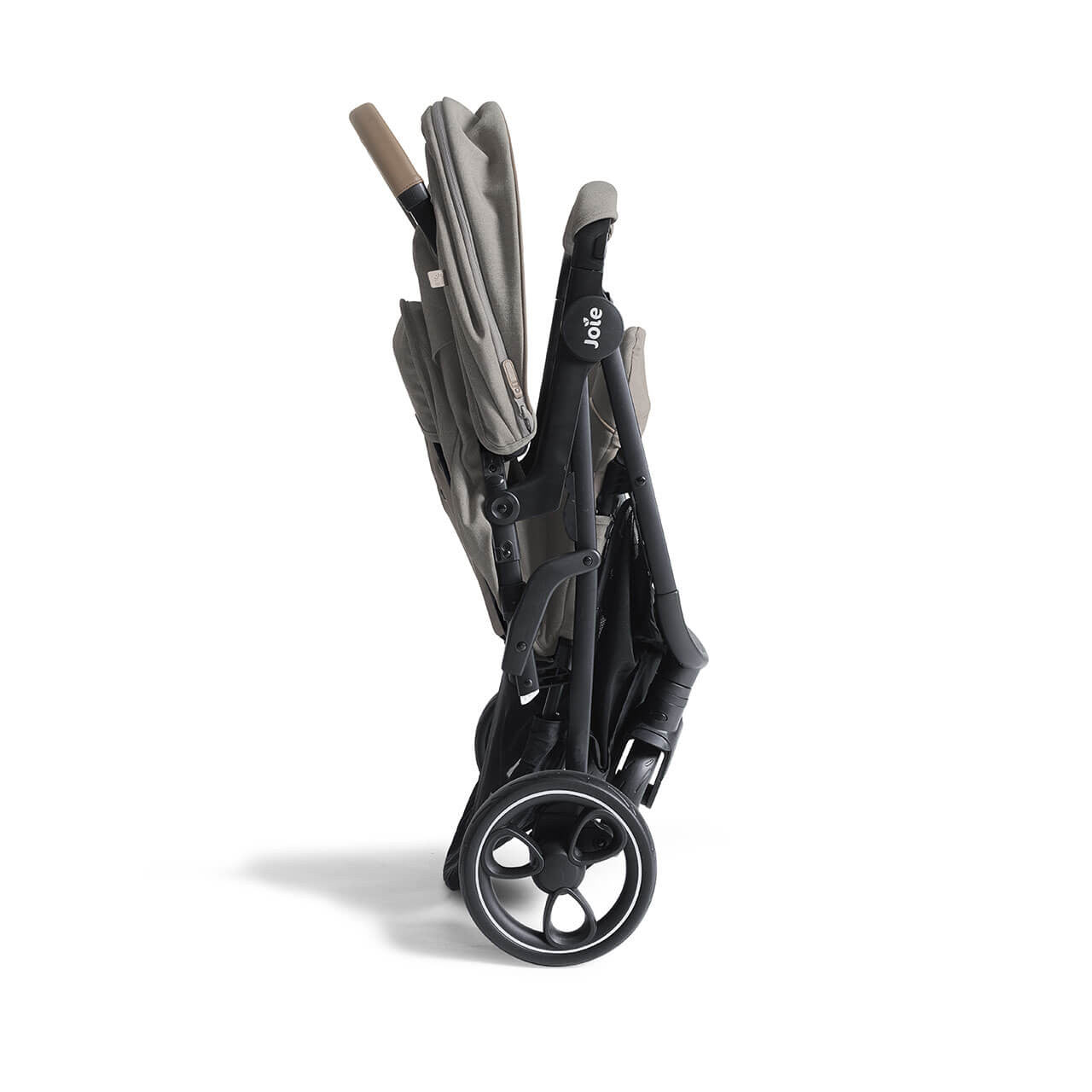 The Joie Estrella Twin folds and unfolds easily with just one hand, making it perfect for busy parents on the go. Designed for hassle-free storage, the stroller stands upright when folded, preventing it from tipping over and saving space.