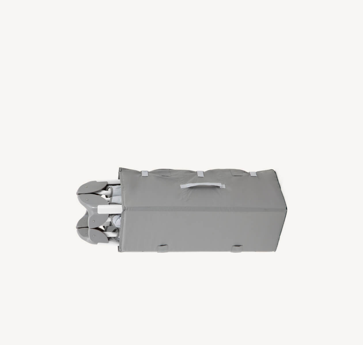 - Travel and storage is simple with a cot that tucks away into a tidy, compact package so you can stow and go in a flash