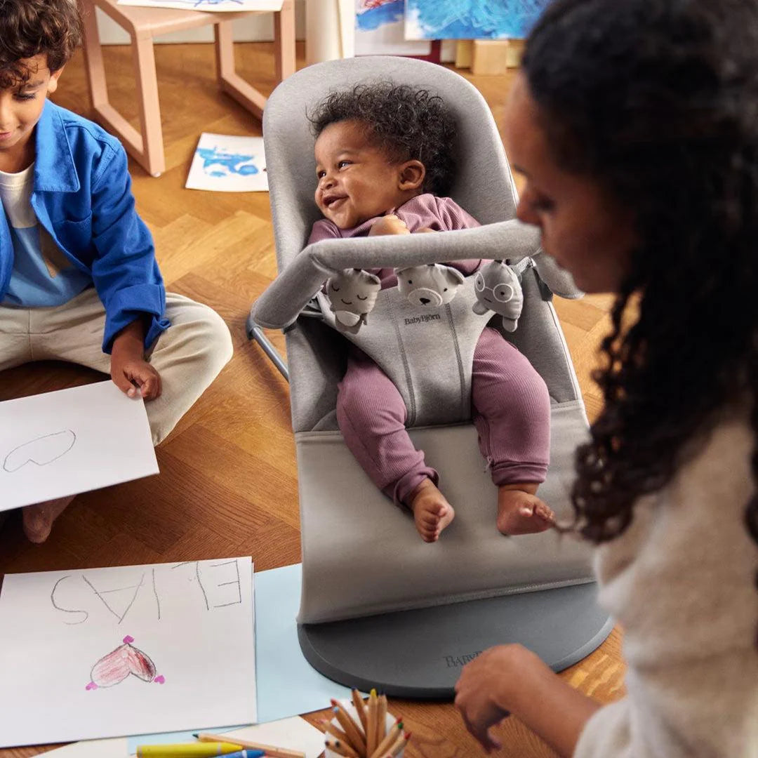 Make playtime even more engaging with the BabyBjörn Soft Friends toy. Designed to attach easily to your BabyBjörn Bouncer, these three adorable characters delight your little one with gentle jingling bells while encouraging exploration, sensory development, and hand-eye coordination. Soft, safe, and machine washable, they’re perfect for keeping baby entertained while giving parents peace of mind.