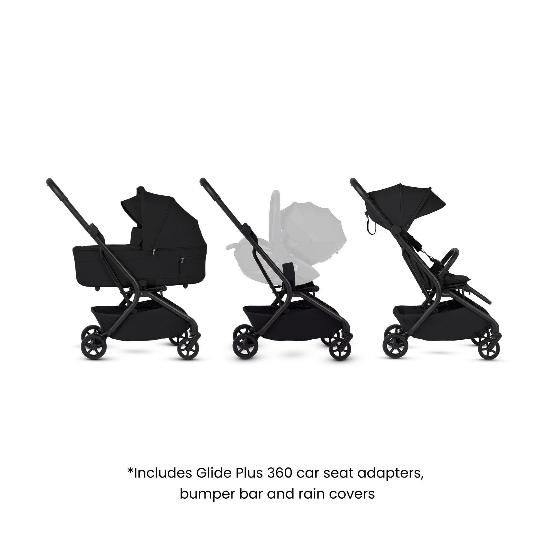• Car seat compatible with Glide Plus 360 adapters included. Additional universal adapters sold separately to pair with a car seat of your choice