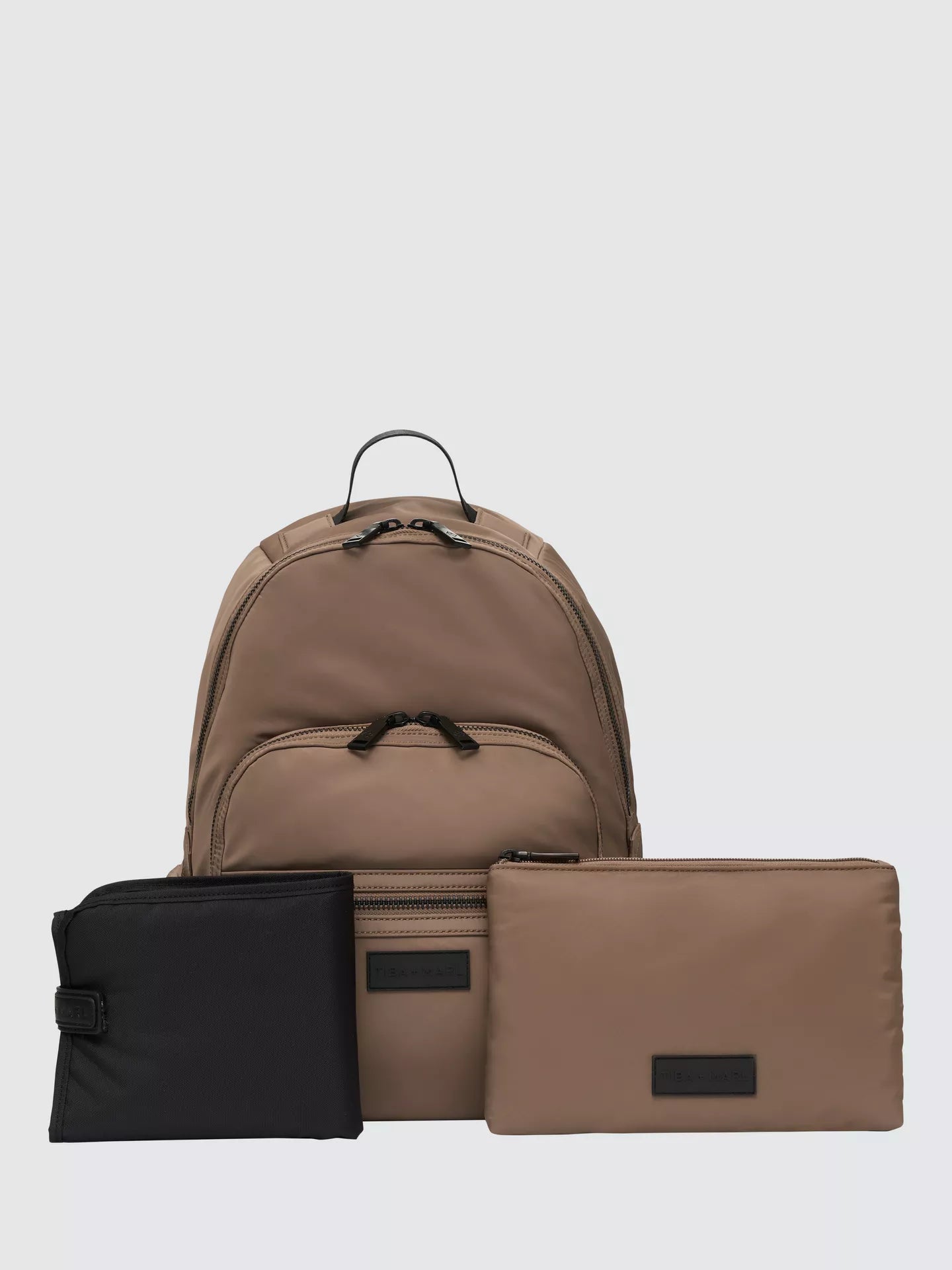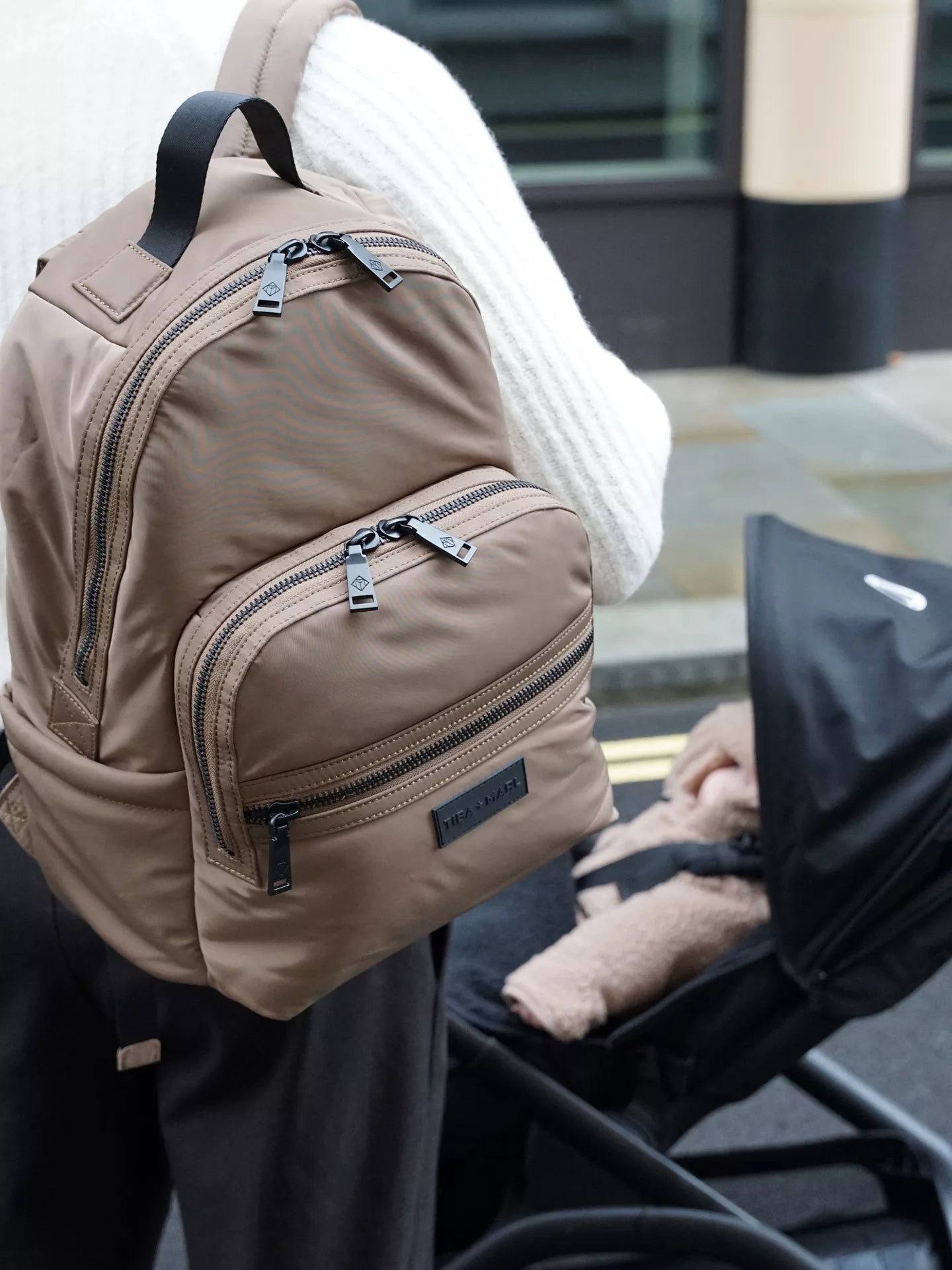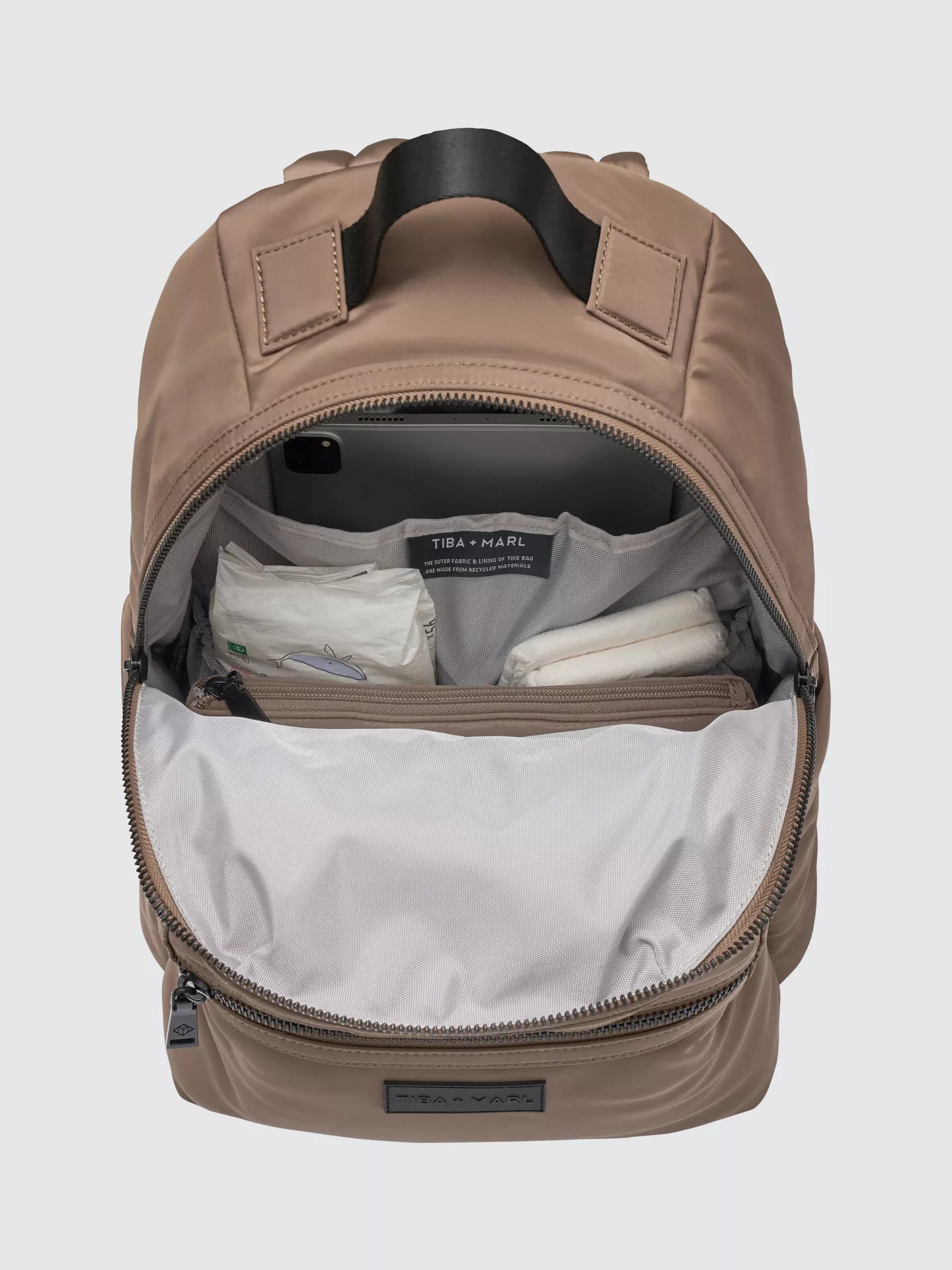 Tiba + Marl advise that when zipping and unzipping your lovely backpack, you hold it or place it onto a surface. Do not hold it by the zips to open and close it. If hanging your bag on a stroller, do so by placing the shoulder straps over the handles. Do not hang the bag from a stroller clip by the grab handle.