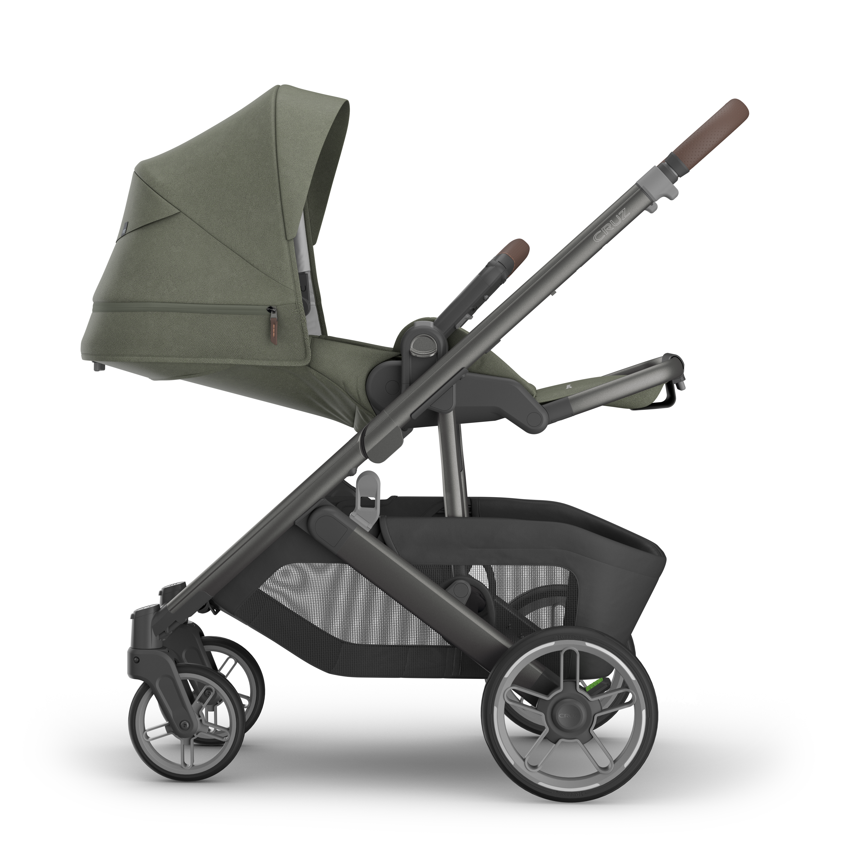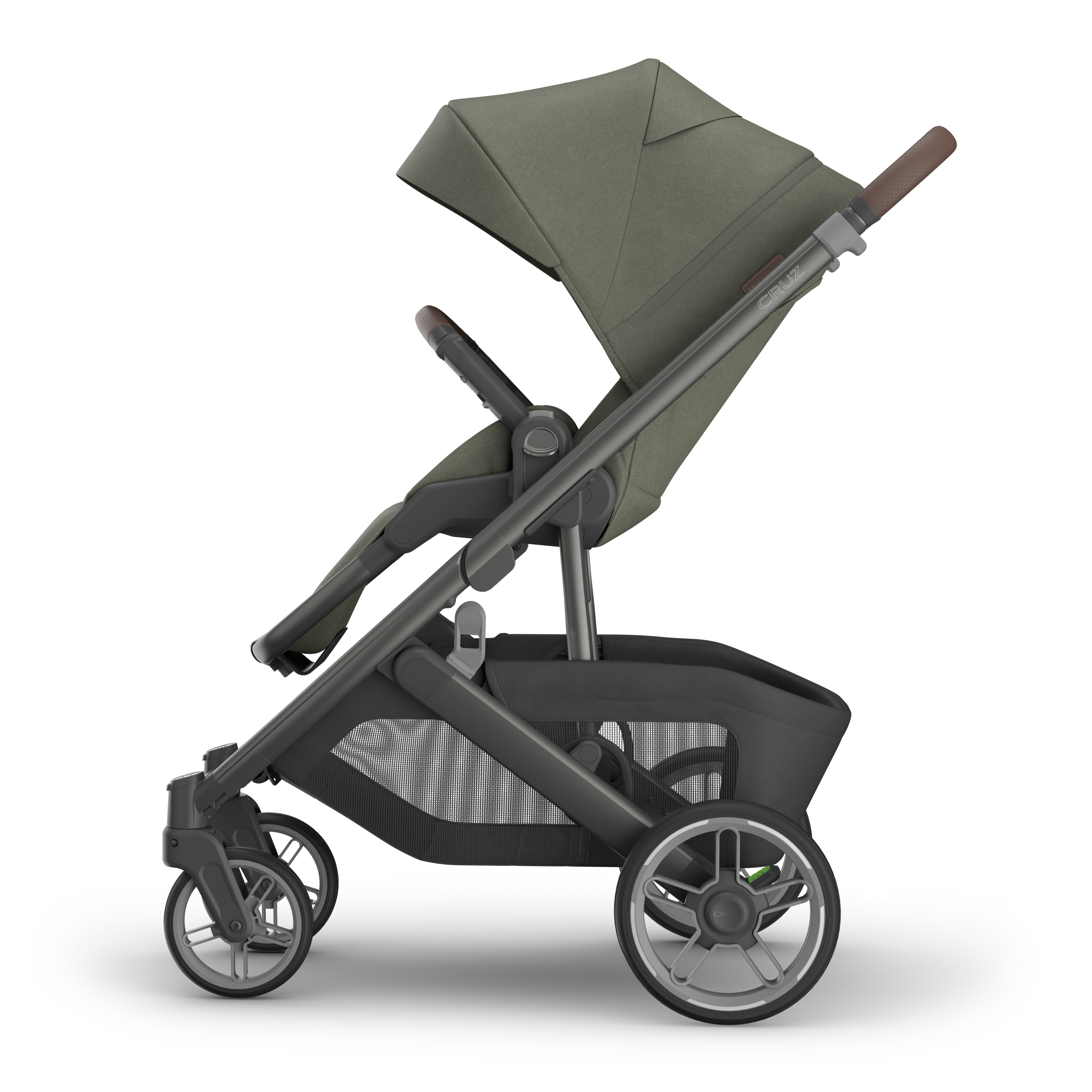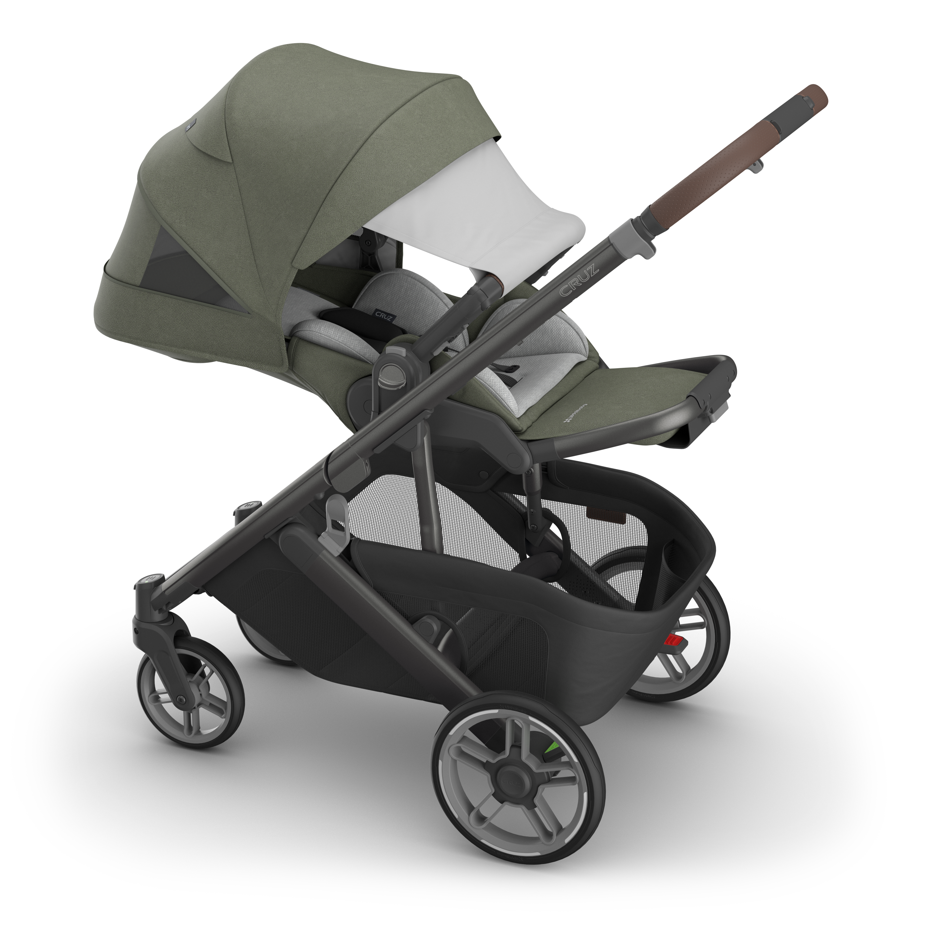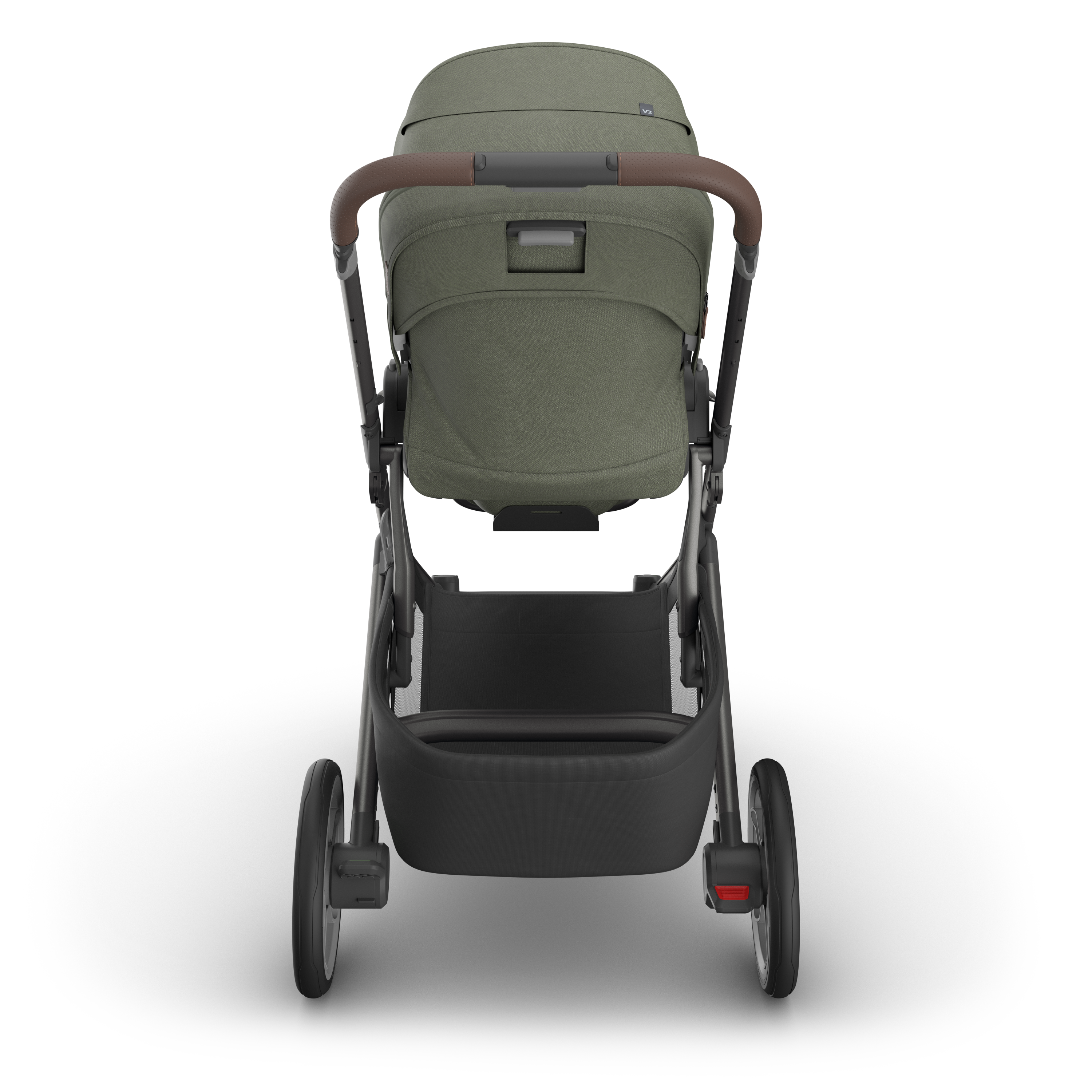 The Uppababy CRUZ V3 boasts a sleek, lightweight chassis paired with all-terrain, puncture-proof wheels and FlexRide shock absorbers, delivering an effortlessly smooth ride. For added safety, the updated rear wheel rims and front forks now feature reflective accents to improve visibility in low-light conditions.