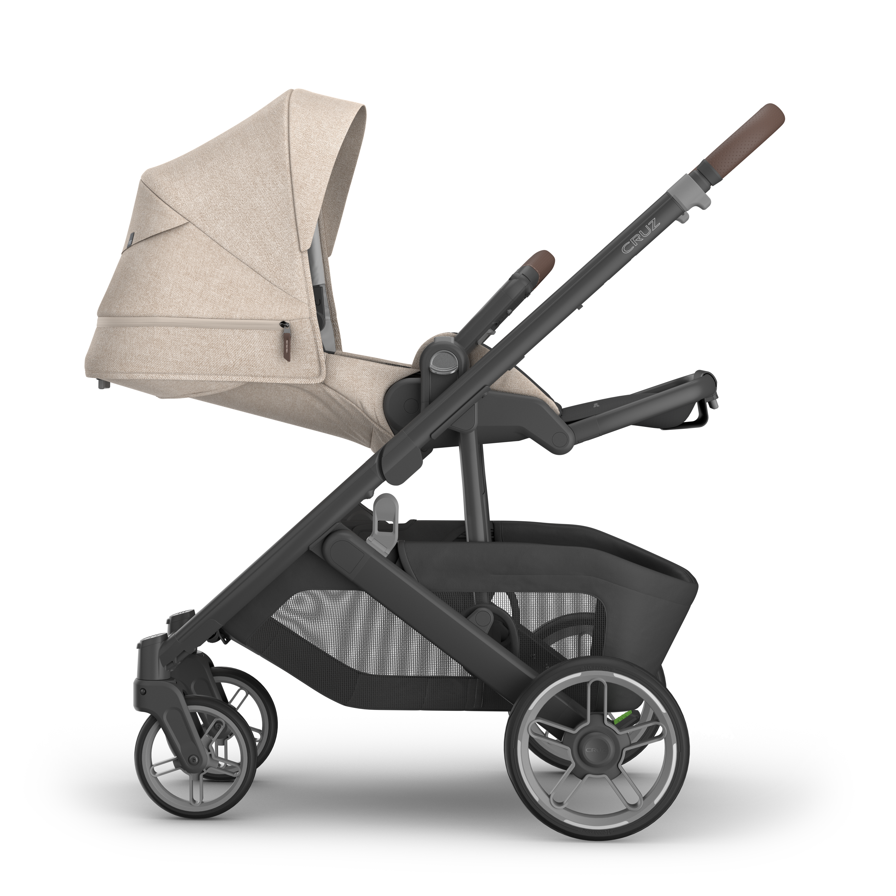 The Uppababy CRUZ V3 comes with an extra-large, easy-access under-seat storage basket that holds up to 13.6 kg, perfect for shopping trips, toys, or all the essentials you need on the go. An optional basket cover is available separately to keep your stroller’s storage clean, protected, and neatly concealed.
