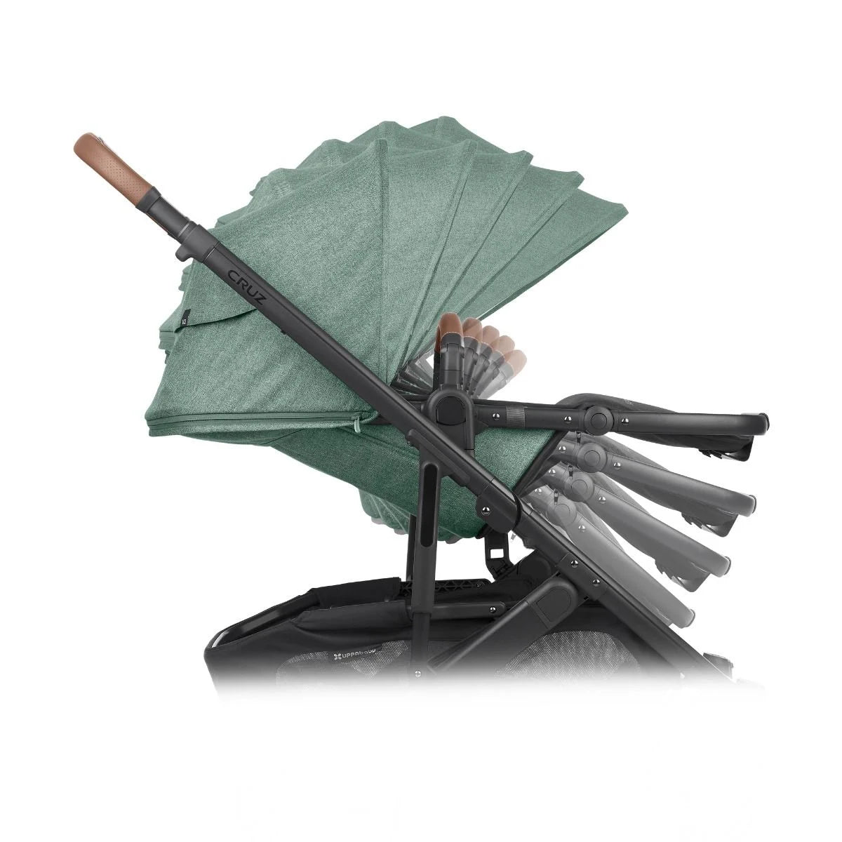 The Uppababy Cruz V2 is a stylish, versatile and streamlined stroller designed to make navigating urban environments easier than ever! The Cruz V2 improves on the already iconic Cruz with a Zip-out extended canopy with UPF 50+ protection, Five-point no-rethread harness, dual-action rear suspension, front spring-loaded suspension, larger, easy-access basket with added storage pockets, self-standing fold and larger front and rear tyres.