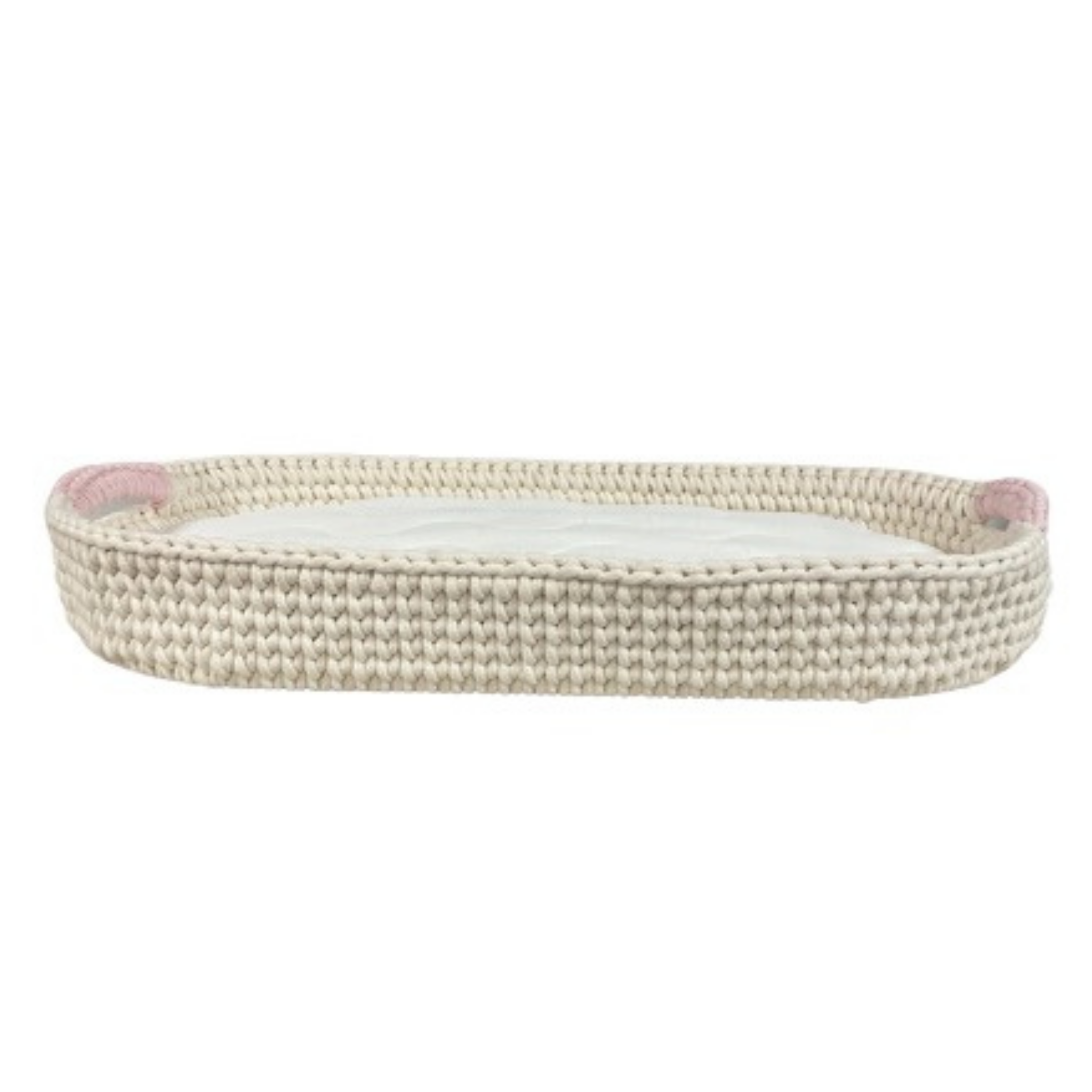 Crochet Changing Basket Bundle - Cream/Light Pink