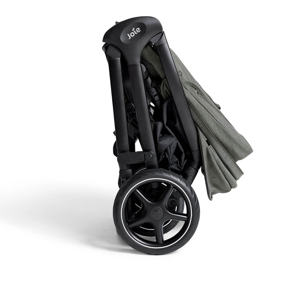 The Joie Finiti can be folded quickly by using just one hand to a compact self standing size, ideal for transport with a integrated carry strap.