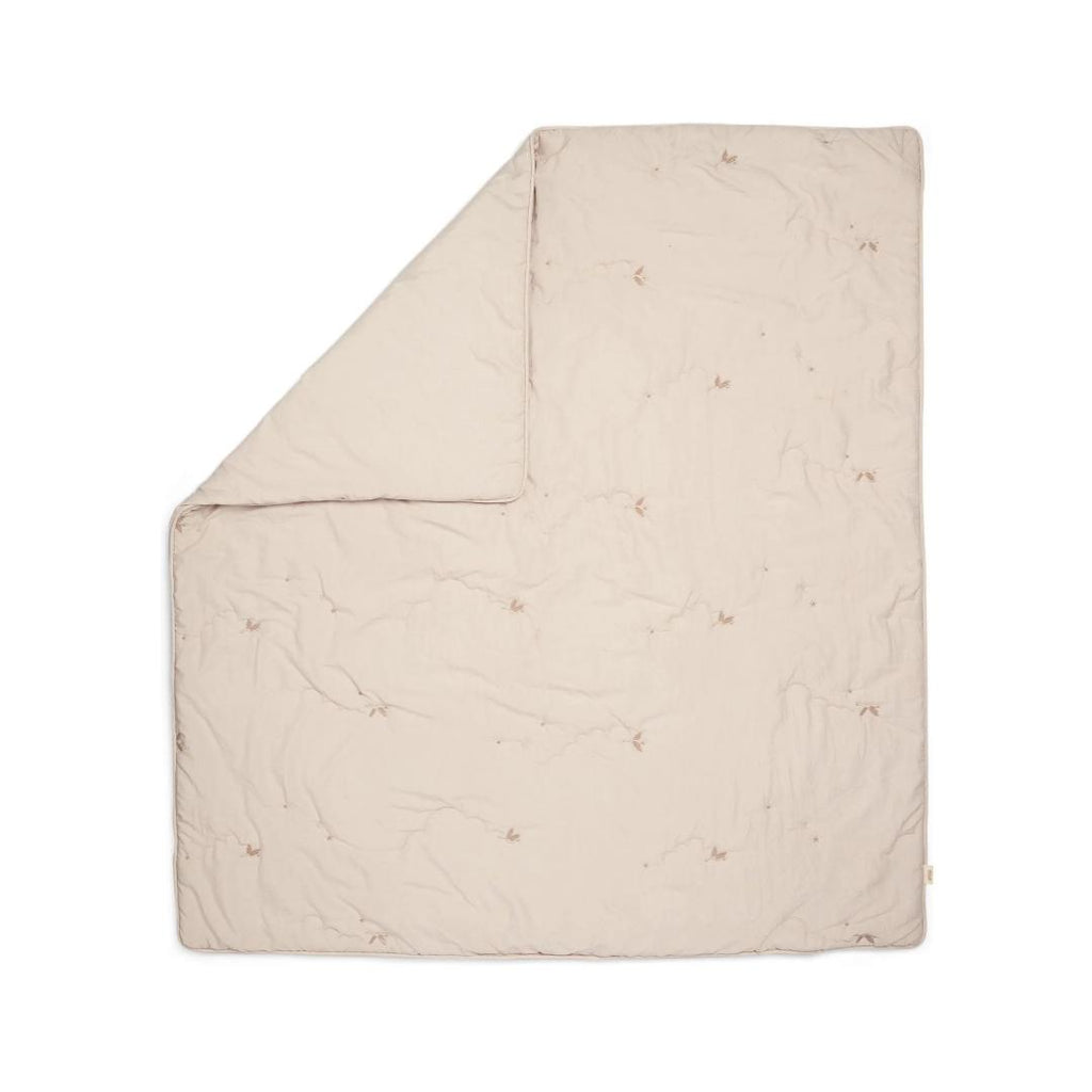 A soft, lofty laundered-feel 4.0 Tog quilt with delicate cloud quilting and 'flying duck' embroidery. With a neutral base this quilt sits effortlessly in most nurseries, while the embroidered ducklings are signature to this range. Finished with deluxe piped edging