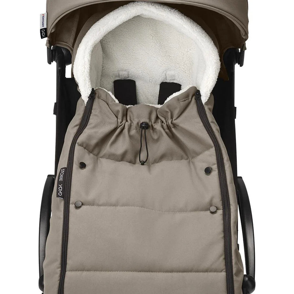 The Stokke YOYO Footmuff in Taupe offers optimal protection. In very cold weather, the fleece hood with drawstring keeps your baby warmer. To adapt to all seasons, the hood is reversible and the upper part of the footmuff is fully detachable.